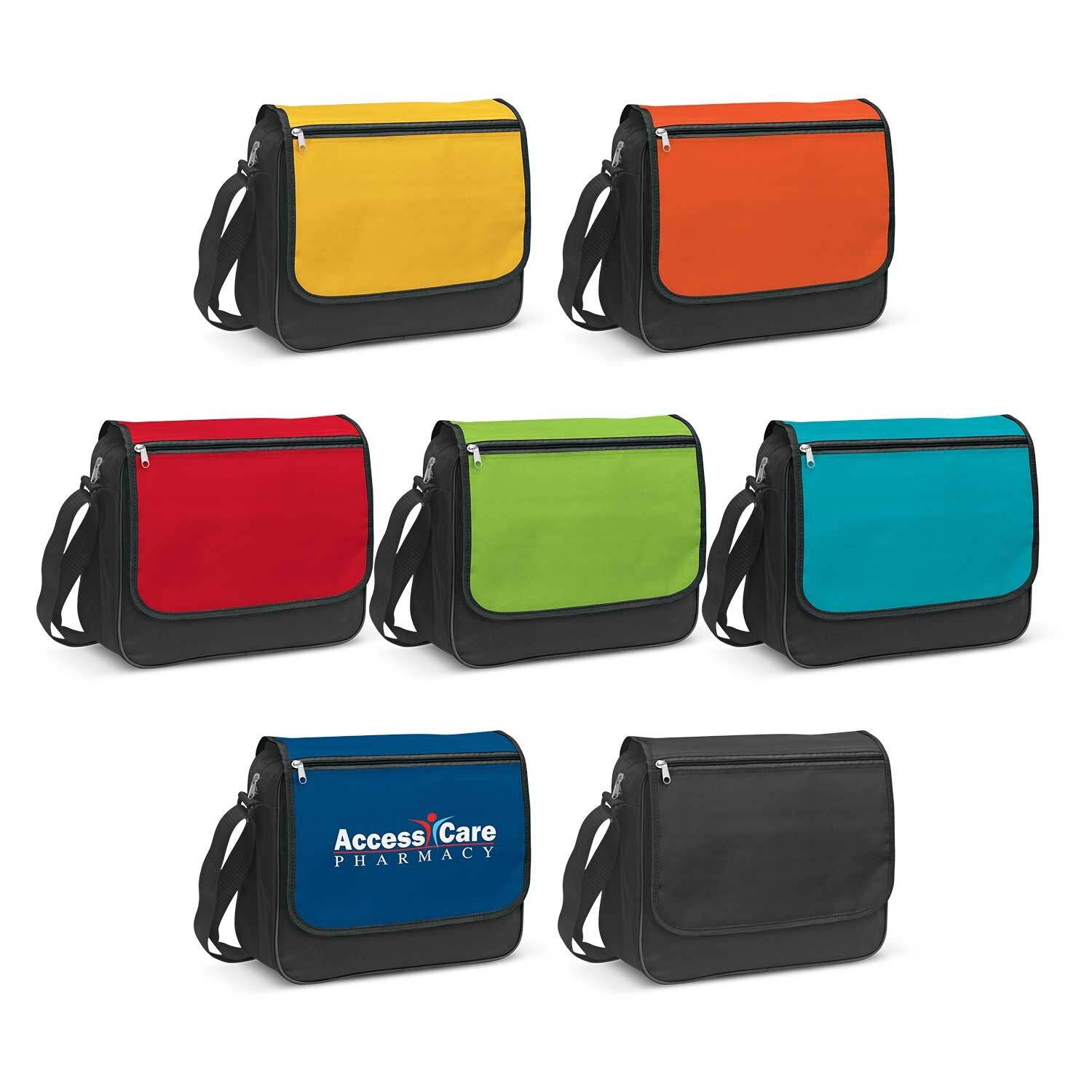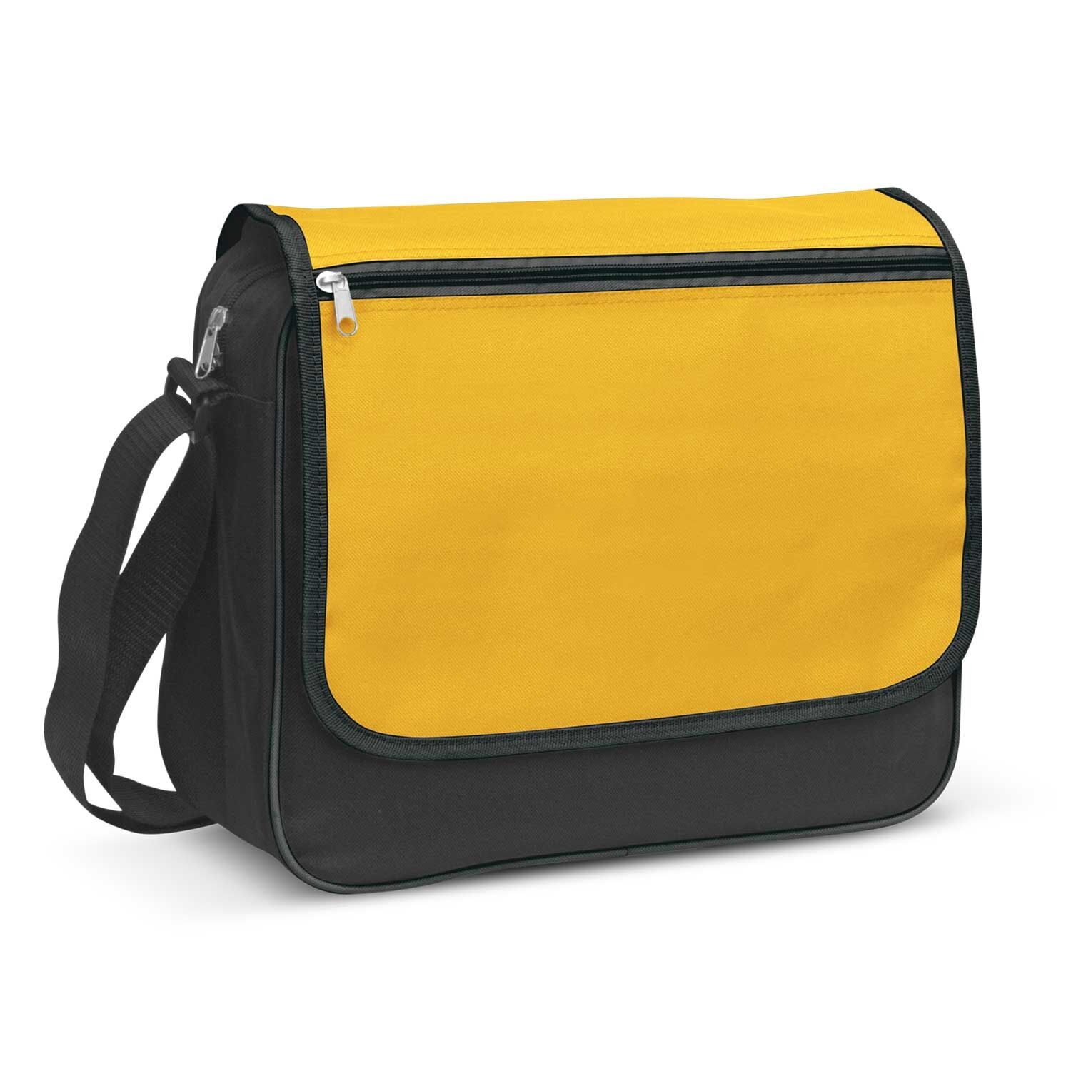Classic messenger bag with a Velcro closure which is manufactured from tough 600D polyester. It has a large gusset for increased capacity and an adjustable woven shoulder strap. Other features include a large zippered front pocket and a mesh water bottle carrier.