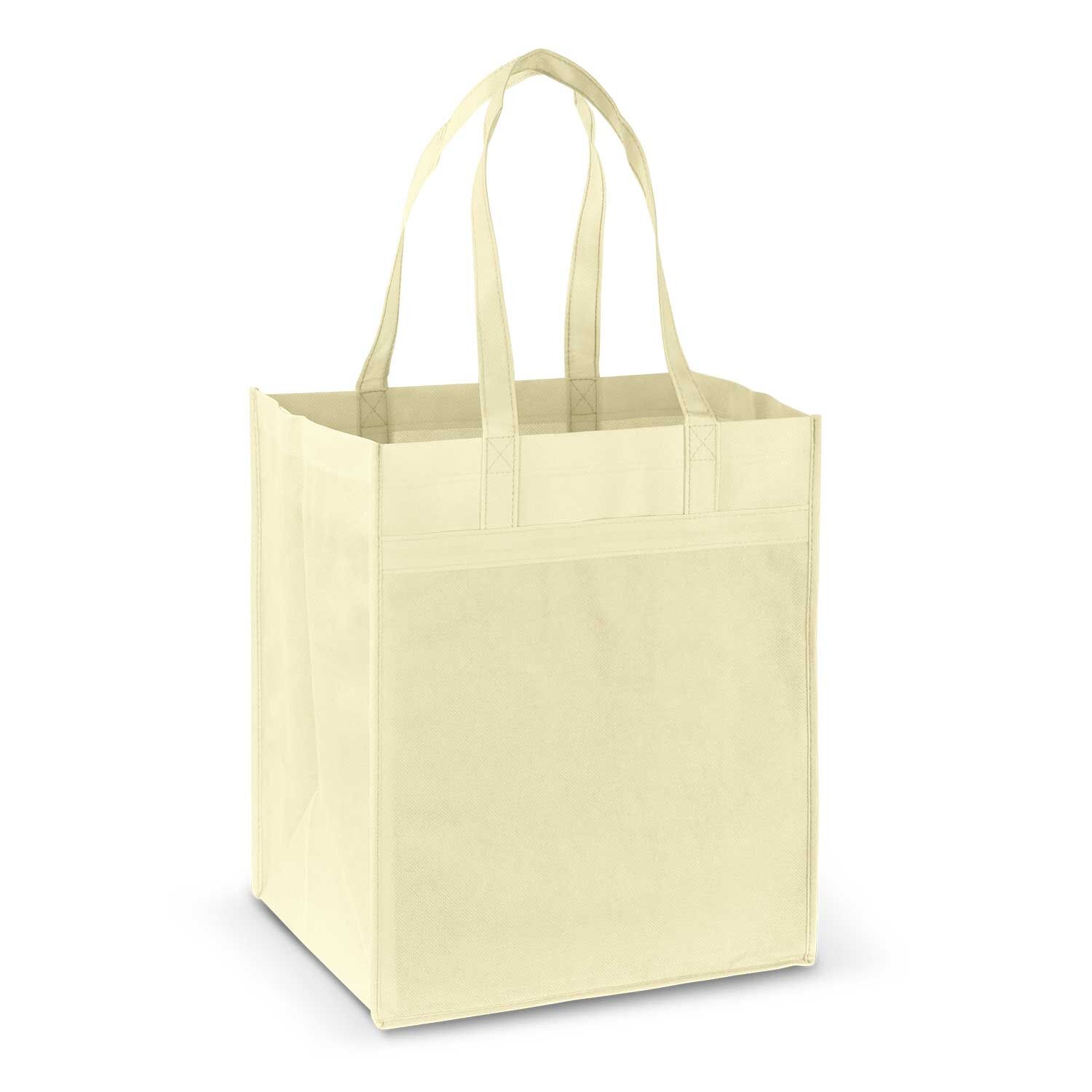 Rugged tote bag with a large gusset which is ideal for carrying bulky items. It is manufactured from heavy 100gsm non-woven polypropylene material. Mega Shopper has a strong plastic base and a reinforced handle design that allows for a larger branding area.
