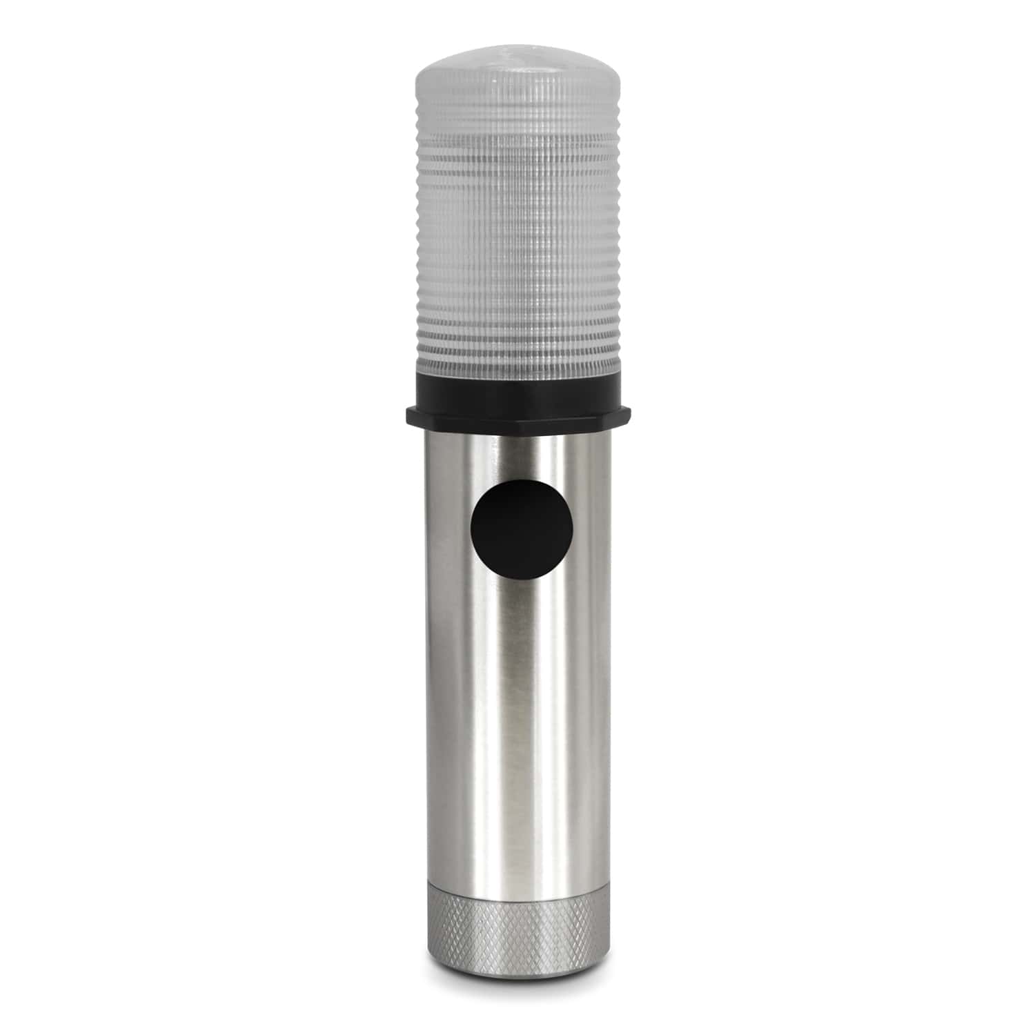Powerful three-function vehicle safety light with a strong magnetic base which allows it to be attached to a vehicle that is parked or immobilised on the side of the road at night. It has a powerful torch with nine LEDs, a red warning light, a red flashing light and it uses three AAA batteries which are included.