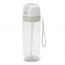 Ergonomic 600ml translucent drink bottle that is manufactured from Tritan which is odour-resistant and BPA-free. It has a secure screw on lid which has a spring loaded cover with push button activation that protects and seals a silicone drinking straw. Other features include a handy woven carry strap and a white presentation box. This product is not dishwasher safe and handwashing is recommended.