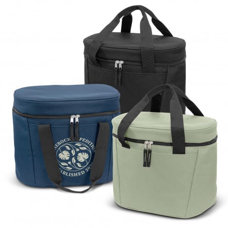 Large 20L cooler bag which is manufactured from robust 600D polyester with PE foam insulation encased in a waterproof PEVA inner liner. It has a zippered top closure with large zipper pulls, woven carry handles and a front slip pocket.