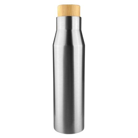 600ml matt powder coated double-walled stainless steel insulated vacuum Montico Drink Bottle. This bottle is BPA-free and will keep your drinks hot for 12 hours or cold for 24 hours, so you can enjoy it throughout the day and stay hydrated. A simple yet stylish designed bottle with a stylish bamboo look screw-on lid. This product is not dishwasher safe, and handwashing is recommended.