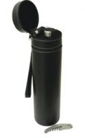 Koeskin outer with foam insulation. Clever design with built-in pouch holding stainless steel wine tools and opener. Boxed.