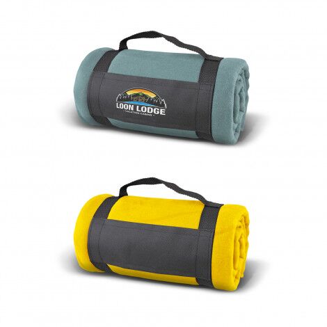 Super warm 1200mm x 1500mm soft fleecy blanket which is presented in a smart woven carry strap that has secure Velcro fasteners and a large area for branding. The blanket is manufactured from 240gsm polar fleece material with neatly stitched edges and is ideal for use at home or any outdoor event.