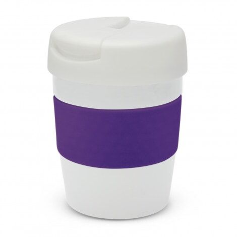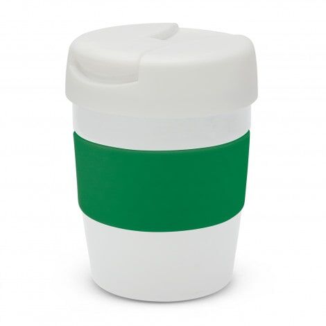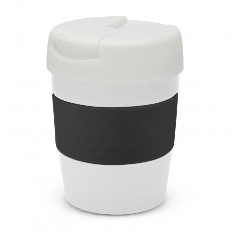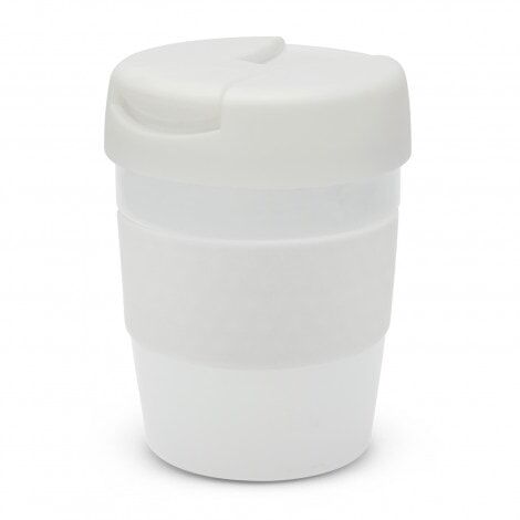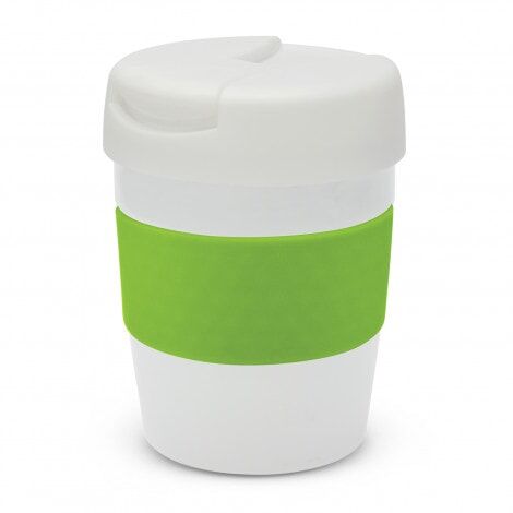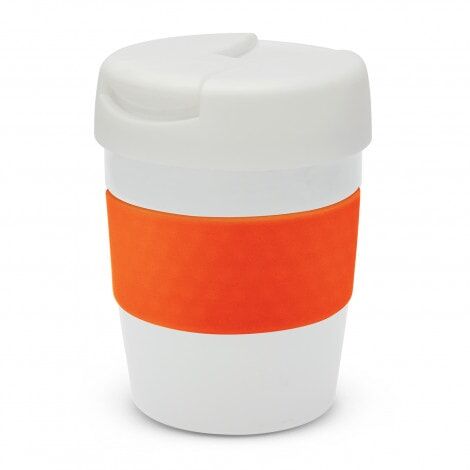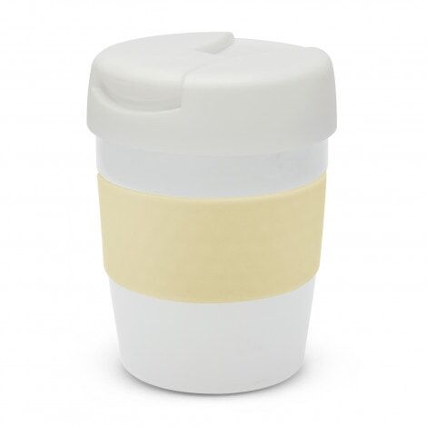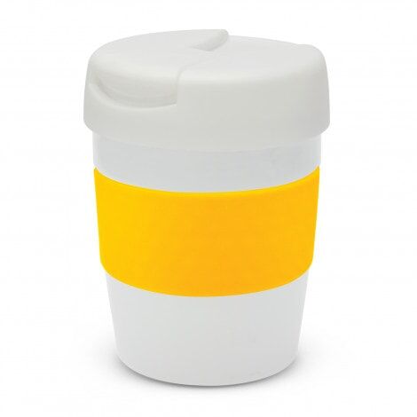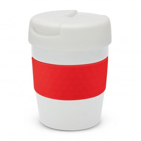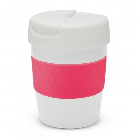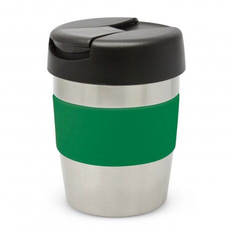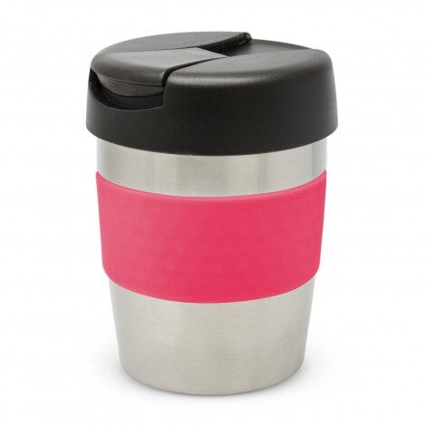Premium 230ml double wall, vacuum insulated stainless steel cup which will keep drinks hot for up to three hours. It has a soft-touch silicone band and a secure screw on lid with a splashproof flip closure. The cup, lid and band can be mixed and matched in any colour combination from the standard colours at no extra cost. Up to five different colour combinations are included in the price and more are available for an additional charge. Java is BPA-free and is presented in a black gift box. An optional gift tube is available on request. This product is not dishwasher safe and handwashing is recommended.