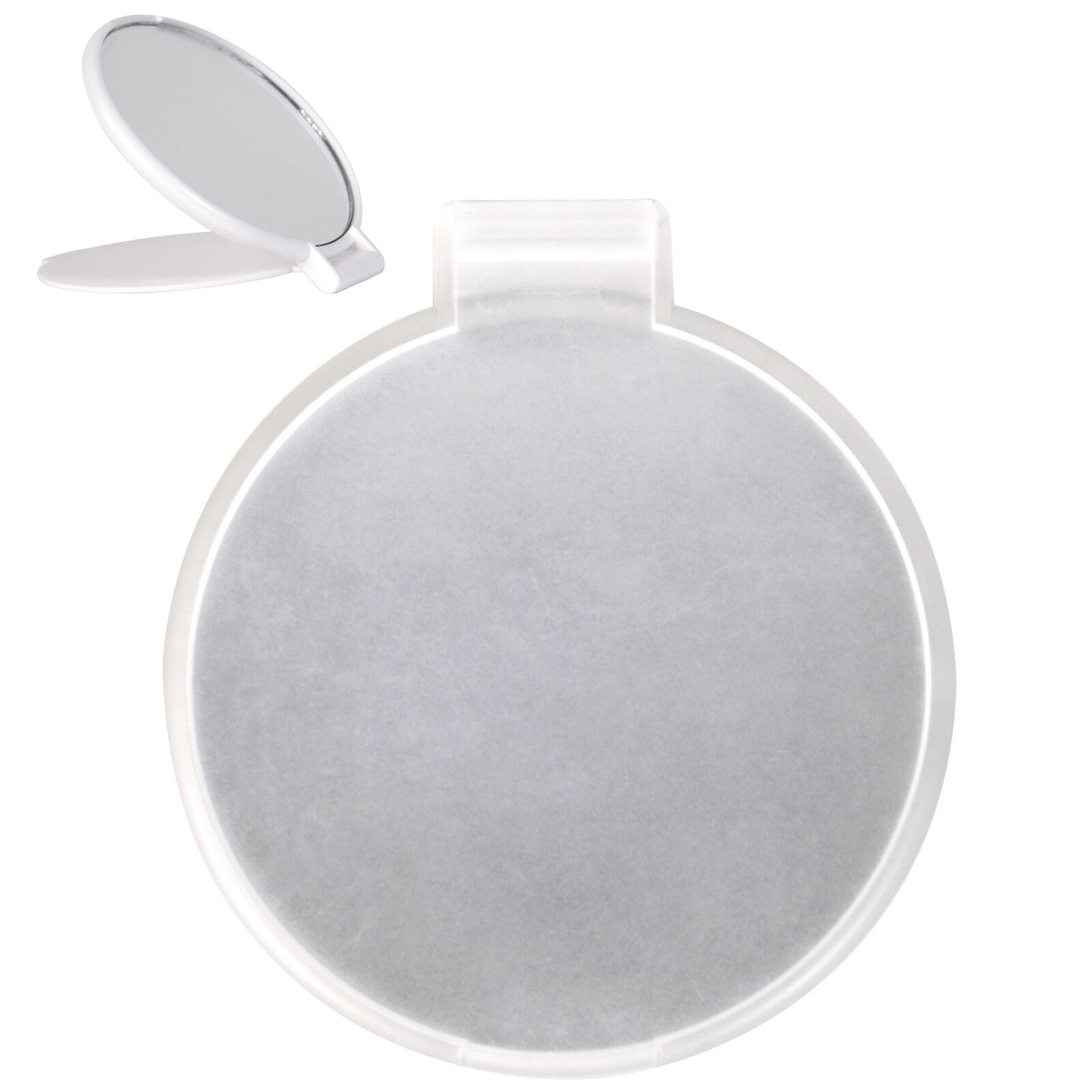 Compact mirror with flip lid that converts to a stand. Handy travel size makes it perfect to slip into your pocket or handbag.