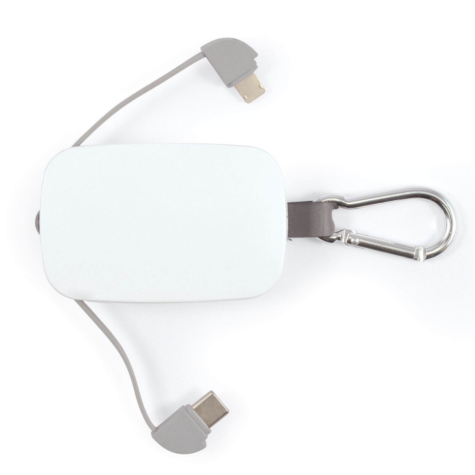 1200 mAh portable charger to keep your phone powered on the go. Provides up to 2 hours talk time. Carabiner attachment for keys or to hide in your bag or pocket. Built in combo micro USB/IOS Connector cable & Type C cable. Incorporates LED torch. Micro USB cable also included for charging power bank. Essential to have on hand in case of power loss or emergency.
