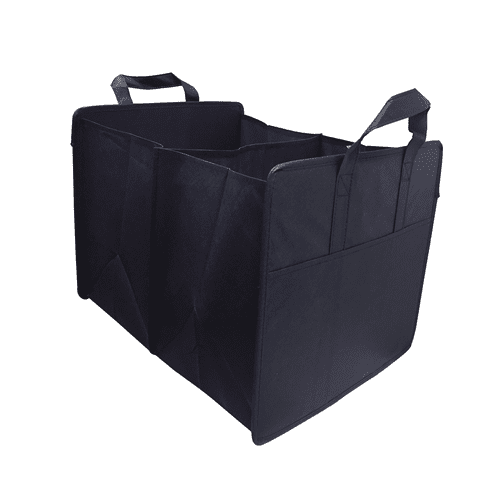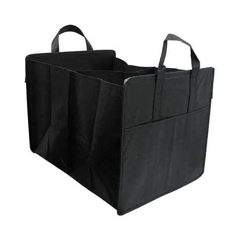 Car trunk organizer. Expendable and collapsible for easy storage. It has PP boards, front pocket and reinforced handles. This bag is made of 90gsm new polypropylene material, which is more durable and stronger.