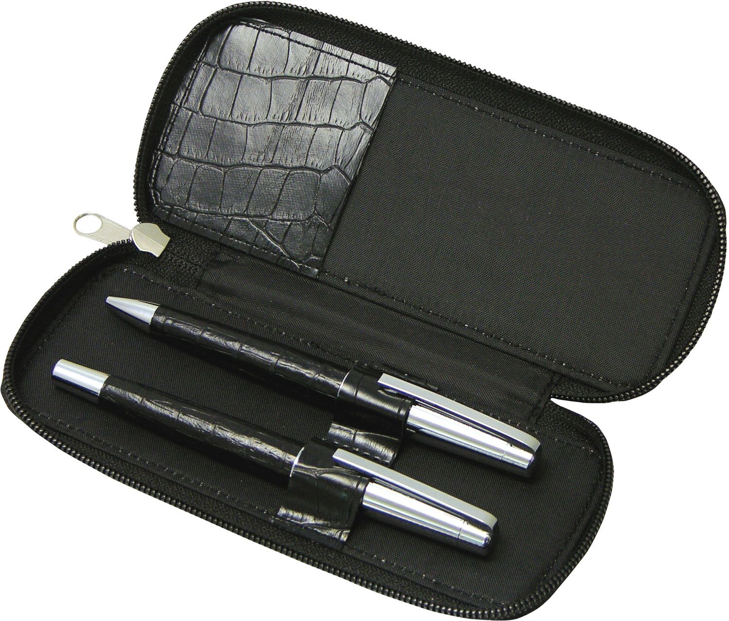 Twin leather pen set with roller ball & ball point. Classic top end gift.Product Size
