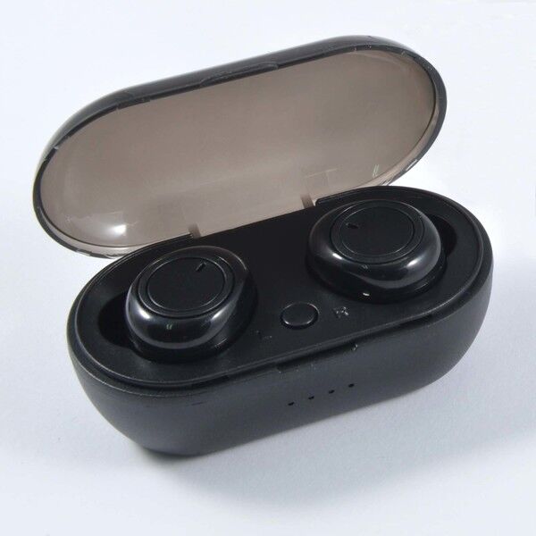 TWS mini in ear earbuds in flip top charging case. High definition, stereo sound with built-in microphone that allows user to take phone calls whilst in use. Micro USB cable for charging included. 250mAh Li-Po battery in charge case. Earbuds 40mAh Li-Po battery. Approx. 3 hours listening time.